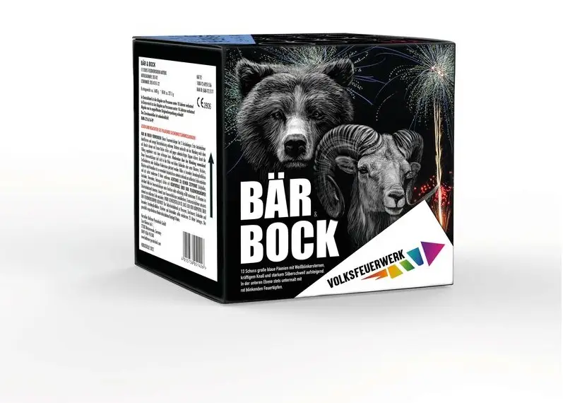 Mit der Feuerwerksbatterie „Bär & Bock“ und ihren 13 Schuss in insgesamt 35 Sekunden können Sie laut ins neue Jahr starten.
