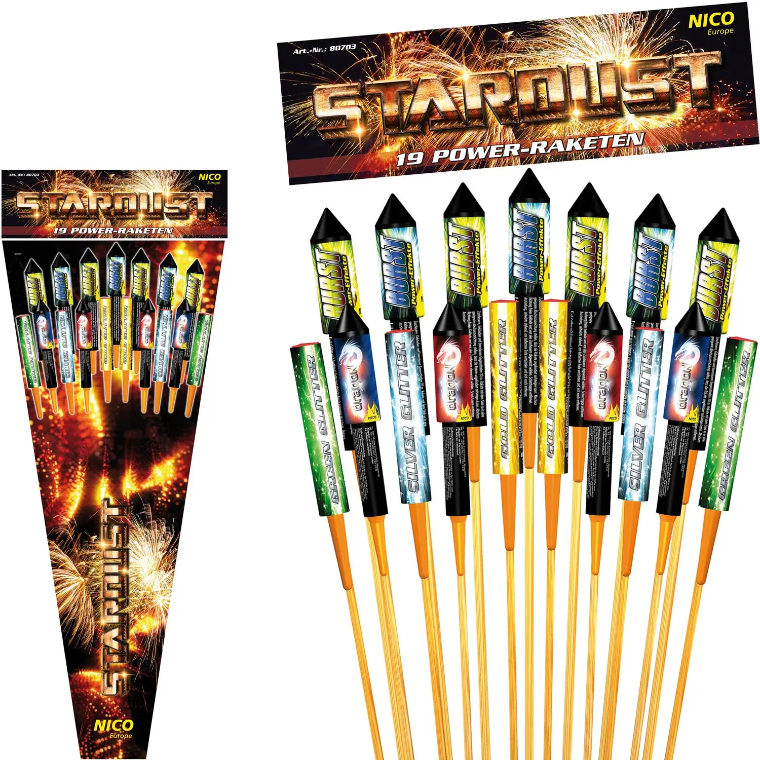 19 Power-Raketen in einem Sortiment. Mit Stardust sichern Sie sich viele Raketen zum kleinen Preis! Absolute Extraklasse!